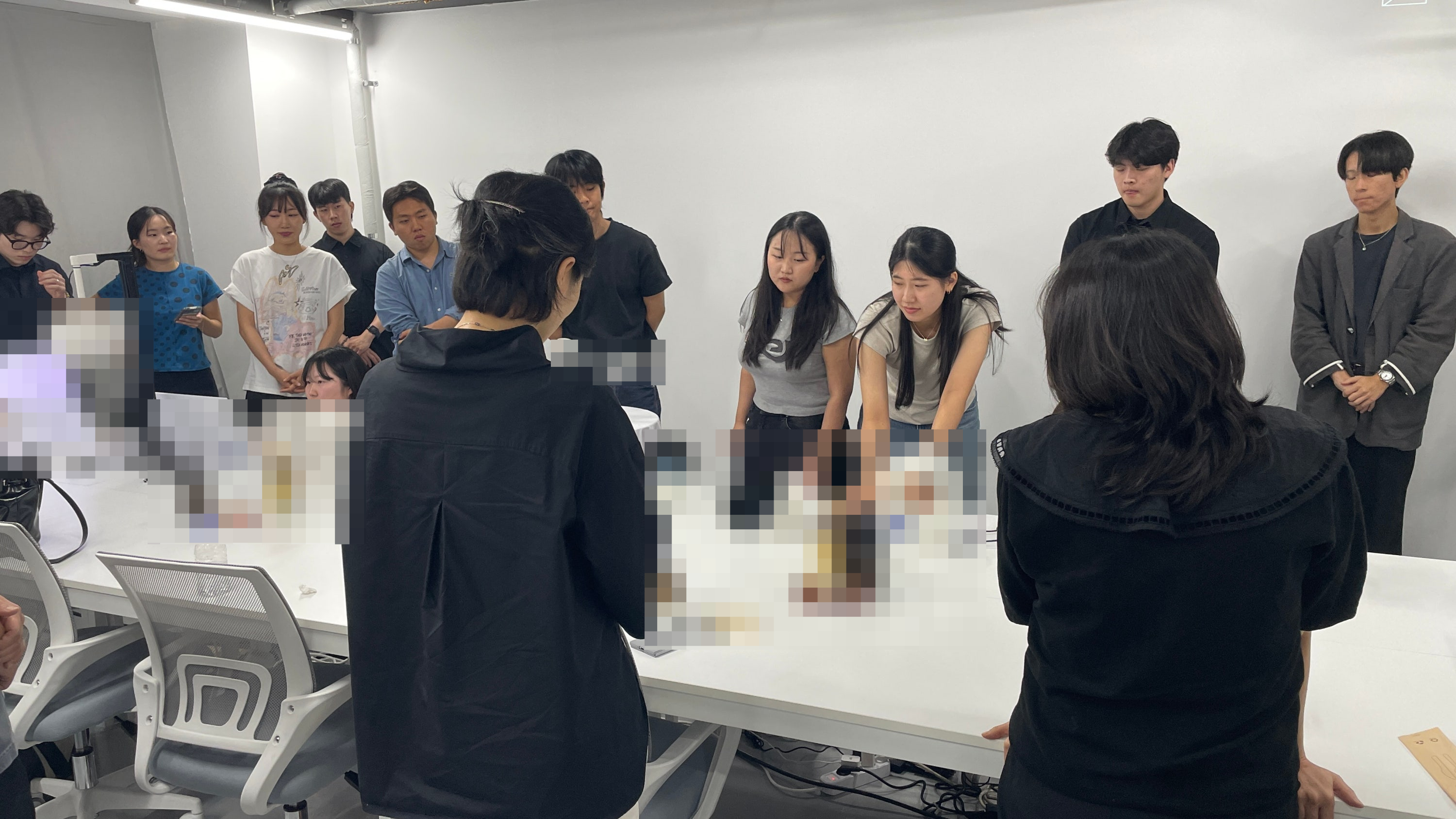 지난 9월 5일 금요일, 삼성전자 디자인경영센터 UX팀을 이끄시는 홍유진 부사장님을 비롯해 오경희 그룹장님 등 총 11분의 임직원께서 HIDE Lab을 방문해 주셨습니다. 이번 방문은 최근 마무리된 산학 프로젝트의 최종 결과 발표와 함께, HIDE Lab 연구원들이 직접 제작한 워킹 프로토타입 시연을 현장에서 공유하는 뜻깊은 자리였습니다.