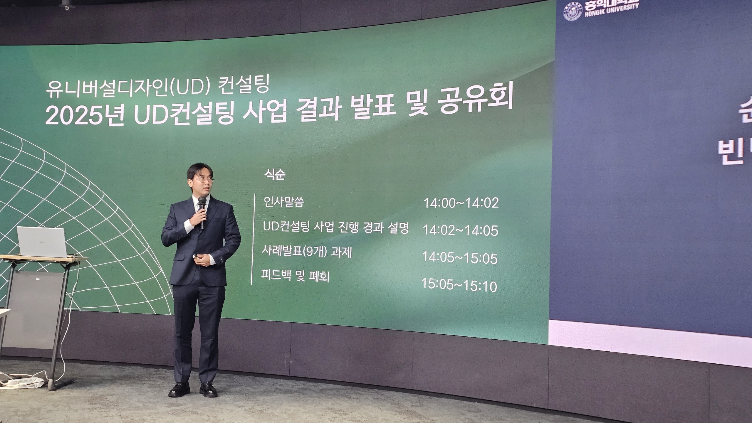 지난 11월 4일(화), 홍익대학교 인간중심통합디자인공학연구실(HIDE Lab)의 조규형 석사연구원이 서울디자인재단에서 “순환경제 공간 구성을 위한 빈병 무인회수기 개발 및 설치” 프로젝트의 결과 발표를 진행하였습니다. 이번 발표는 공공디자인을 통한 지속가능한 순환경제 실현을 목표로 한 연구 결과를 공유하는 자리로, HIDE Lab이 기획, 설계, 프로토타이핑, 검증에 이르기까지 전 과정을 주도적으로 수행한 프로젝트였습니다. 본 프로젝트는 박기철 교수 지도 아래 진행되었으며, 조규형 연구원이 프로젝트를 총괄하고, 고은결 연구원이 GUI 디자인, 이성빈 연구원이 기구 설계, 유휘구 연구원이 제품 디자인을 담당하여 팀원 간의 긴밀한 협업을 통해 성공적으로 완수되었습니다.