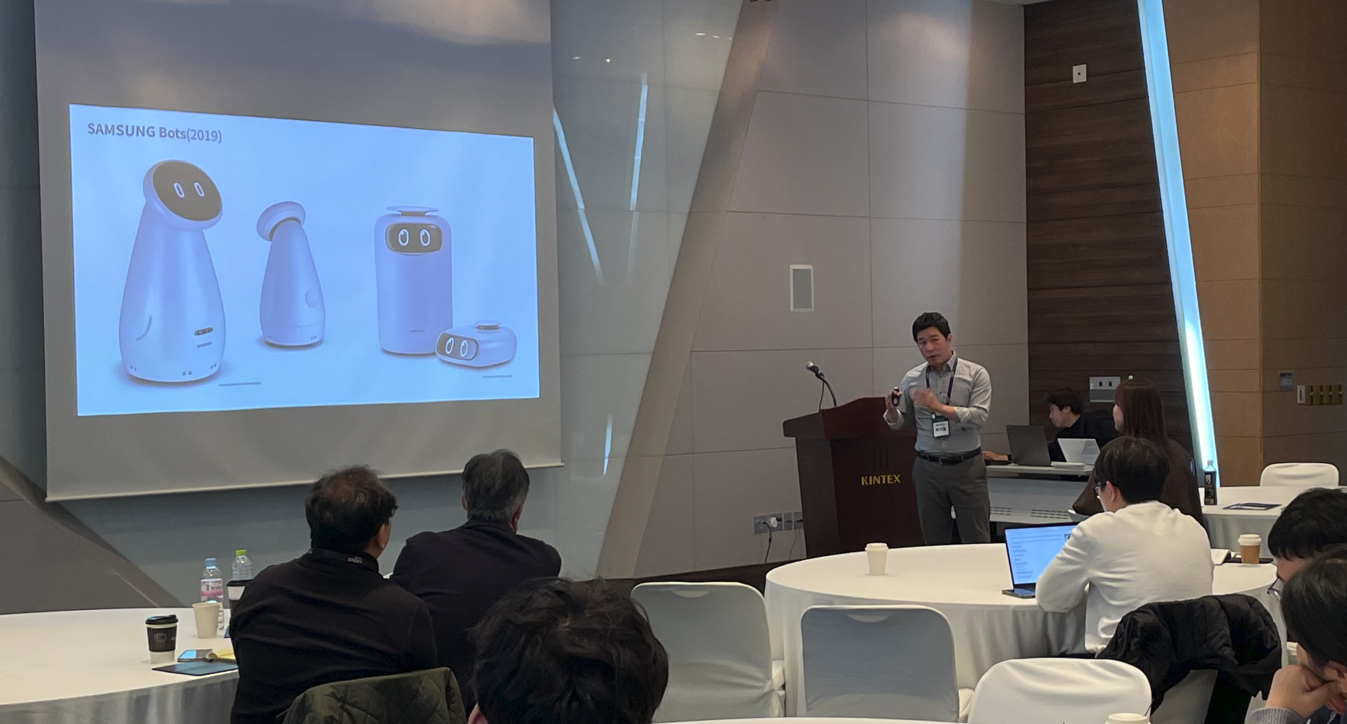 또한 고가·고복잡도 기술을 전제하지 않고도 실제 생활 맥락에서 지속적으로 작동·확산될 수 있는 적정기술 기반의 CX 로드맵을 제안하였으며, 생체·행동 데이터와 내러티브 관찰을 결합한 혼합평가로 현장 적용성을 높이는 방법을 소개하였습니다. 발표 이후 교육, 헬스케어, 시니어 케어 영역을 중심으로 공감형 로봇 UX의 산업 적용과 단계적 도입에 관한 질의가 이어졌고, 여러 기업으로부터 협력 문의가 접수되었습니다.