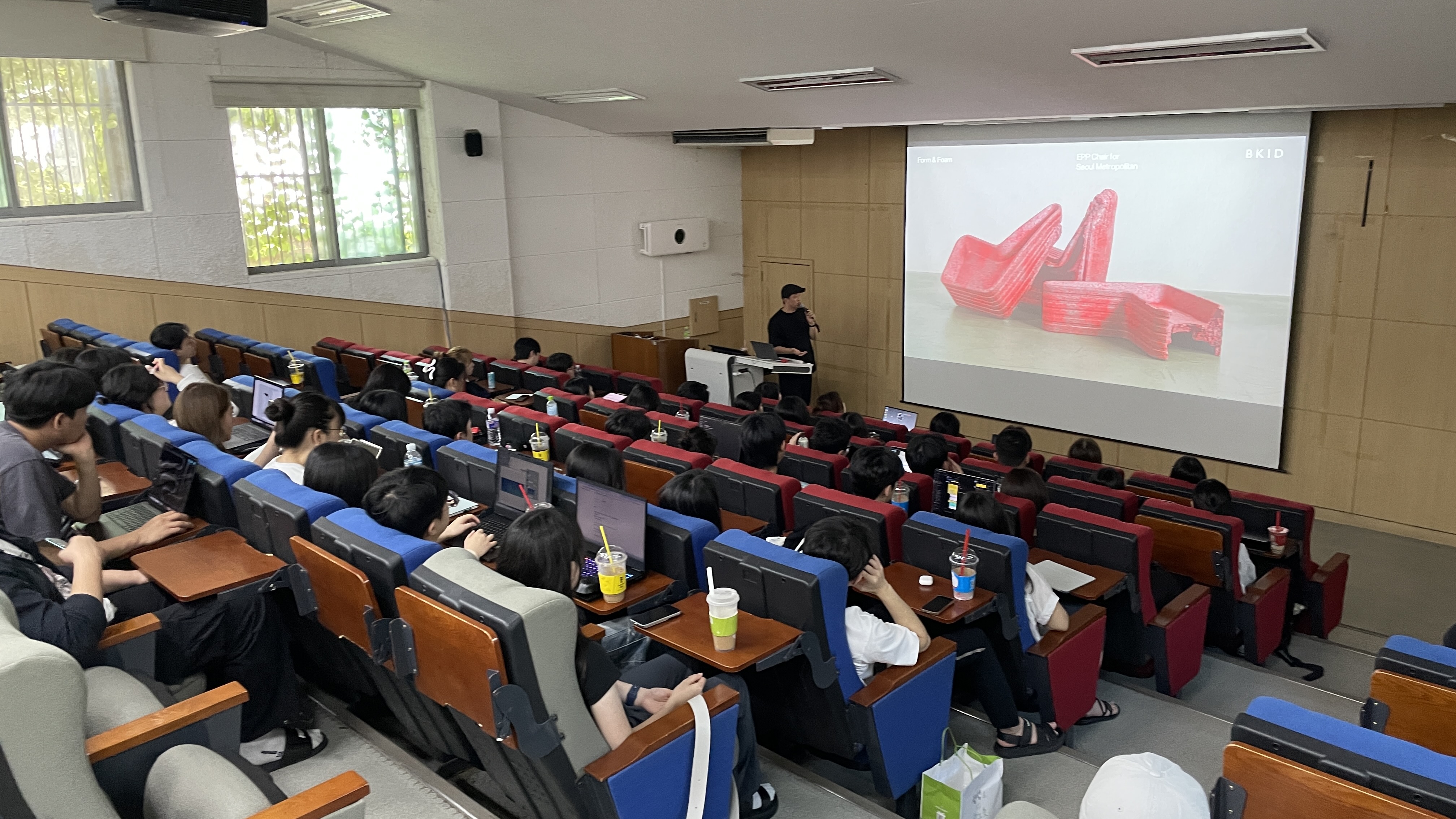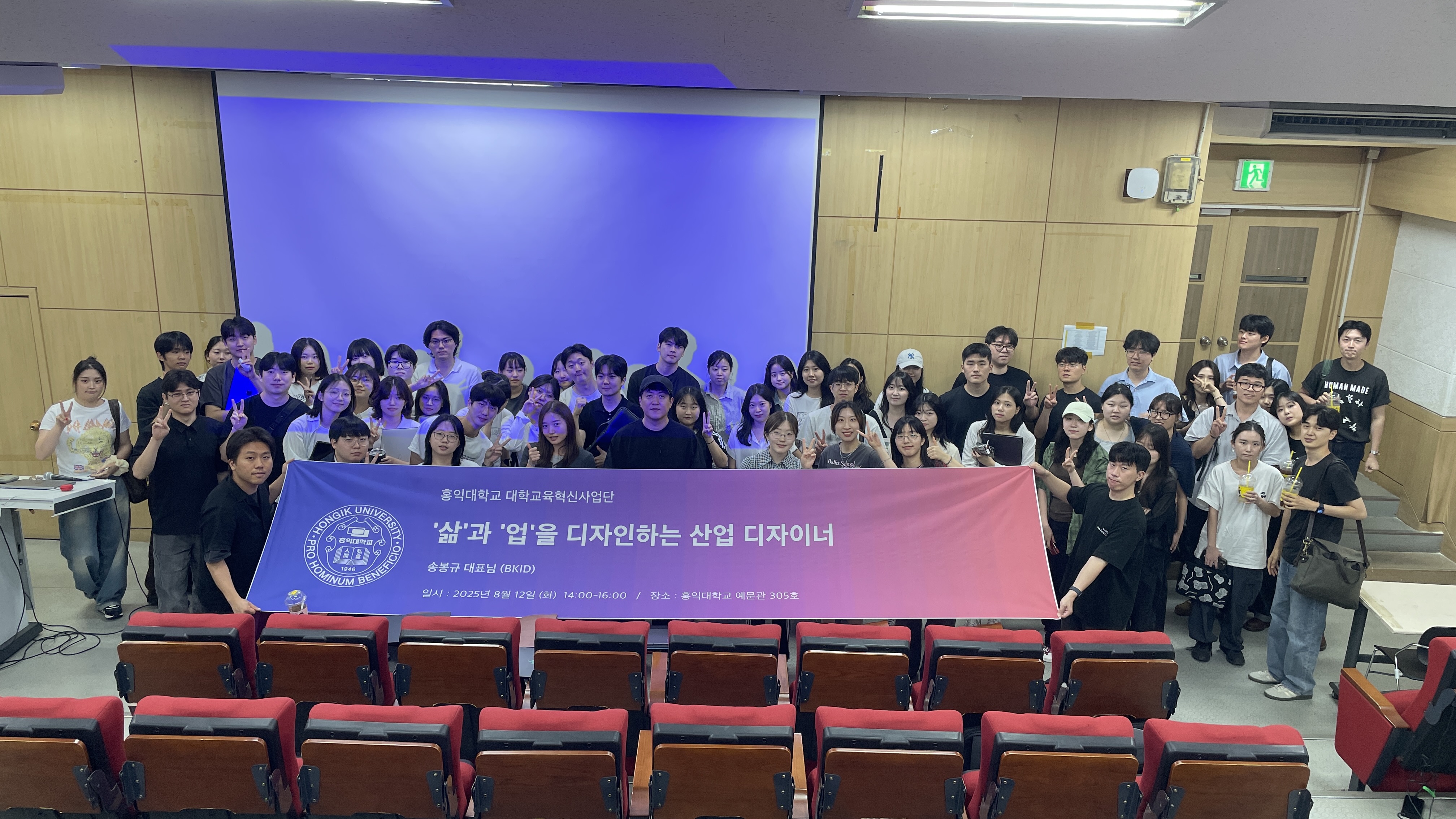 8월 12일(화) 오후 2시, 홍익대학교 제1공학관(K동)에서 「‘삶’과 ‘업’을 디자인하는 산업 디자이너」를 주제로 BKID 송봉규 대표를 모신 특강이 개최되었습니다. 이번 특강에는 디자인엔지니어링 전공을 비롯하여 산업디자인, 시각디자인 등 관련 전공의 학부·대학원생들이 다수 참석하여, 현업 산업디자이너의 커리어와 디자인 철학을 직접 듣고자 하는 높은 관심을 보여주었습니다.