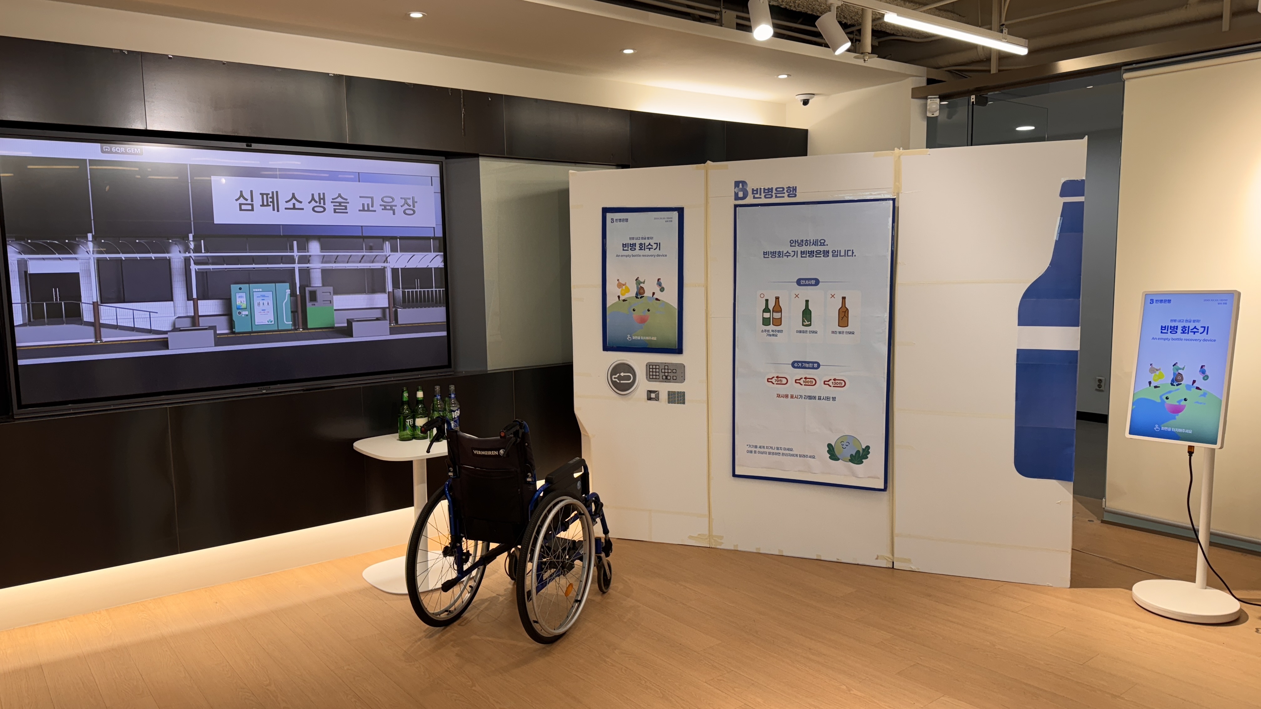 HIDE Lab은 현장 관찰, 사용자 인터뷰, 행태 분석을 기반으로 기존 빈병 무인회수기에서 발생하는 접근성 문제, 정보 이해도 부족, 공간 혼잡 등 실질적인 불편 요소를 체계적으로 도출하였습니다. 이를 바탕으로 누구나 쉽게 기기에 접근할 수 있도록 투입구와 조작부의 위치와 높이를 재설계하고, 시각·청각·촉각을 활용한 다중감각 피드백 시스템을 고도화하였으며, 사용자 동선과 수거 공간이 자연스럽게 연결되는 순환경제 기반의 공간 UX 구조를 함께 마련하였습니다. 더불어, 빈병이 다시 자원으로 순환되는 과정을 직관적으로 이해할 수 있도록 환경 인식 확산을 위한 정보 디자인을 개발하여, 단순한 기기 개선을 넘어 지속가능한 행동 변화를 유도하는 공공 서비스 디자인 모델을 제시하였습니다.